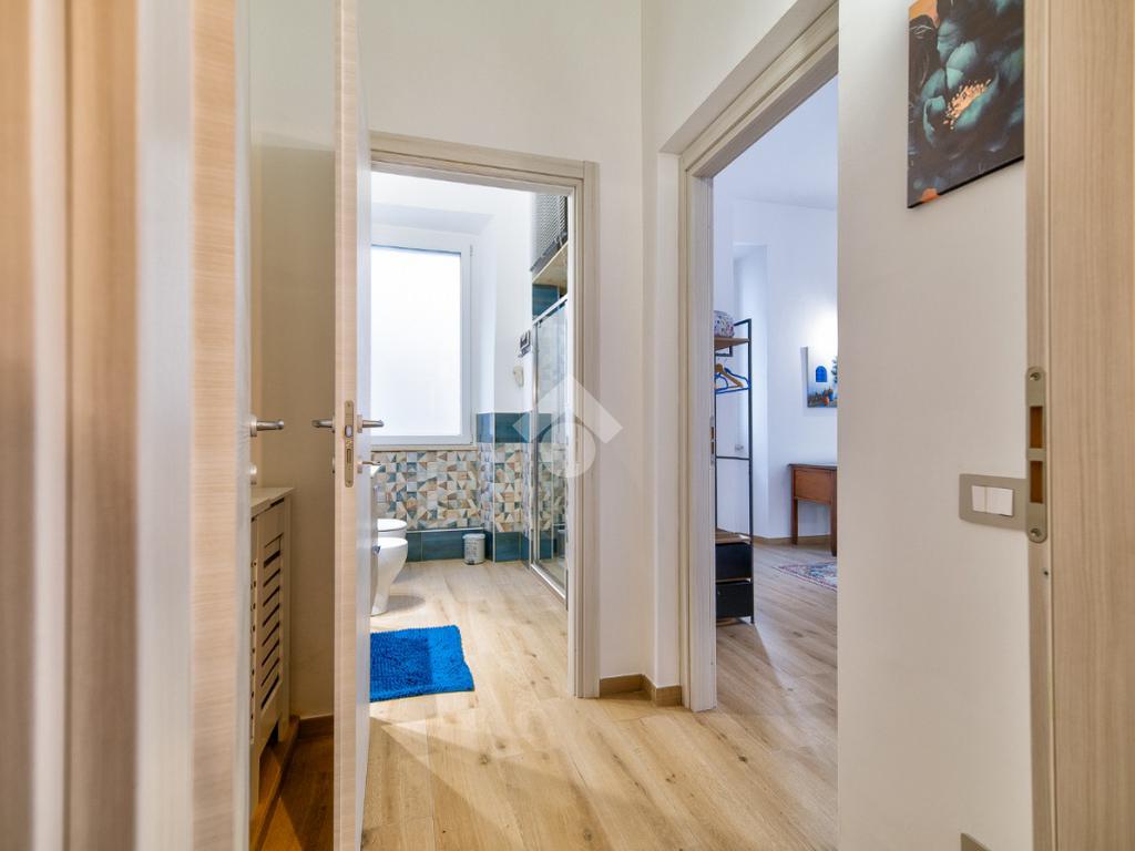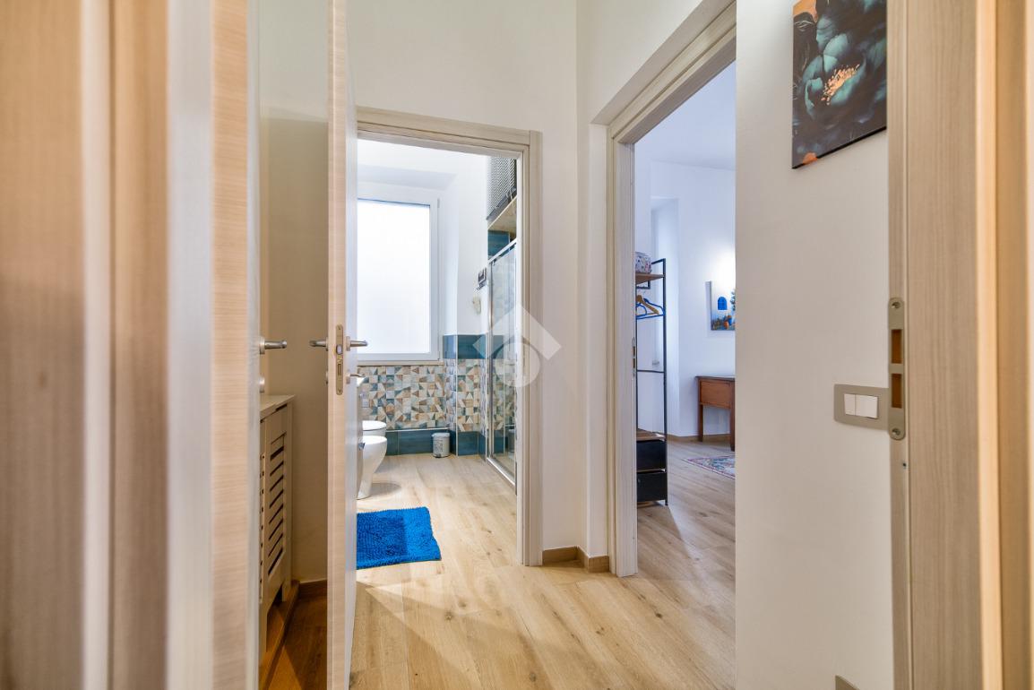 Alla fine del corridoio è situato un disimpegno che conduce alla seconda camera matrimoniale e al secondo bagno, finestrato e anch’esso con box doccia.