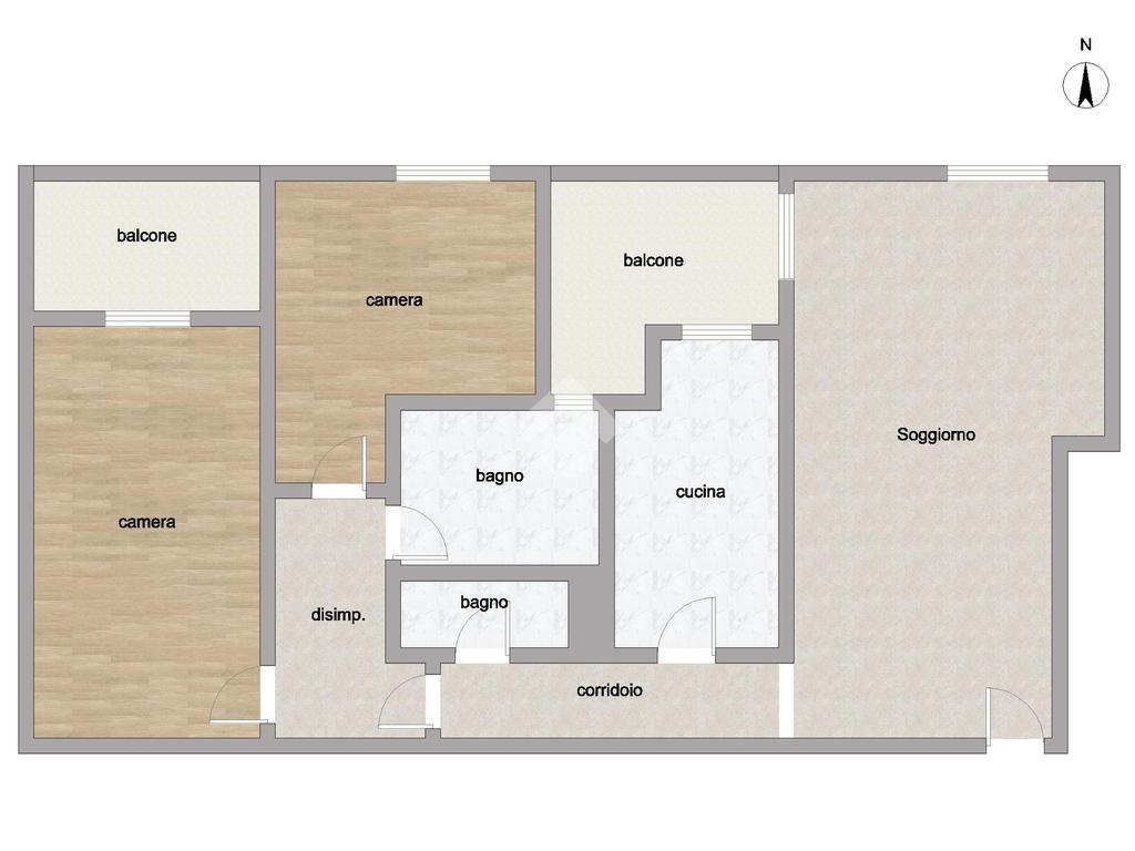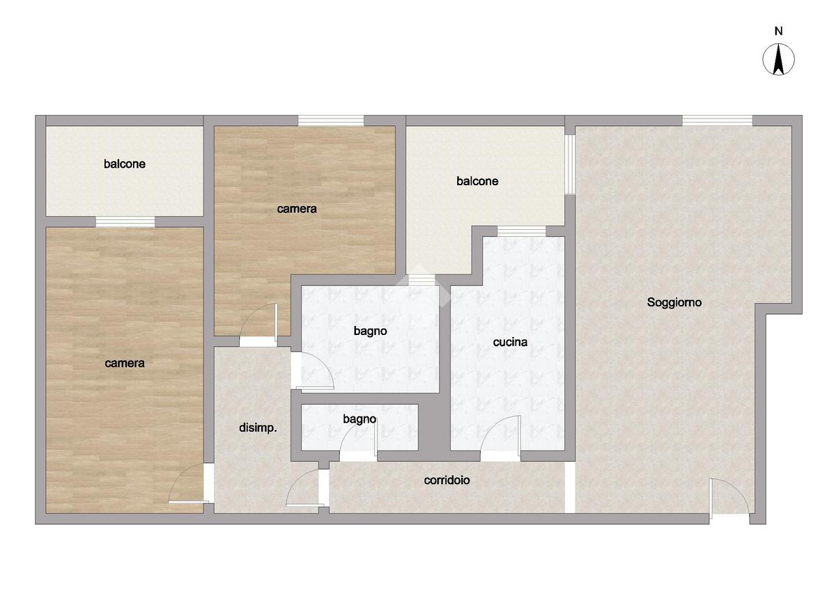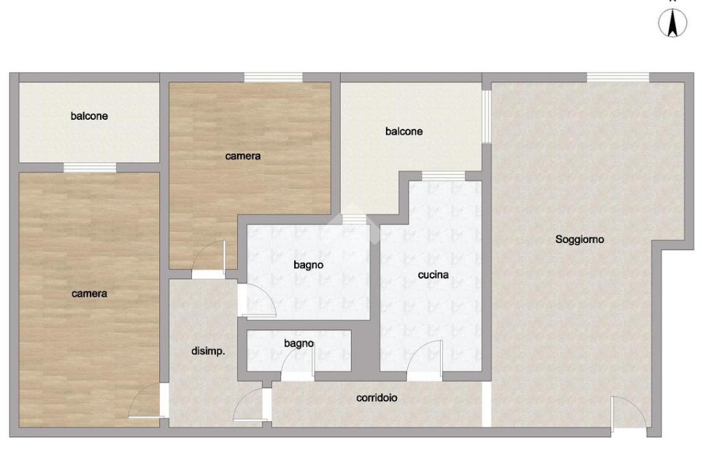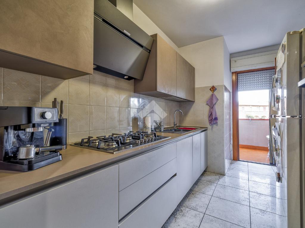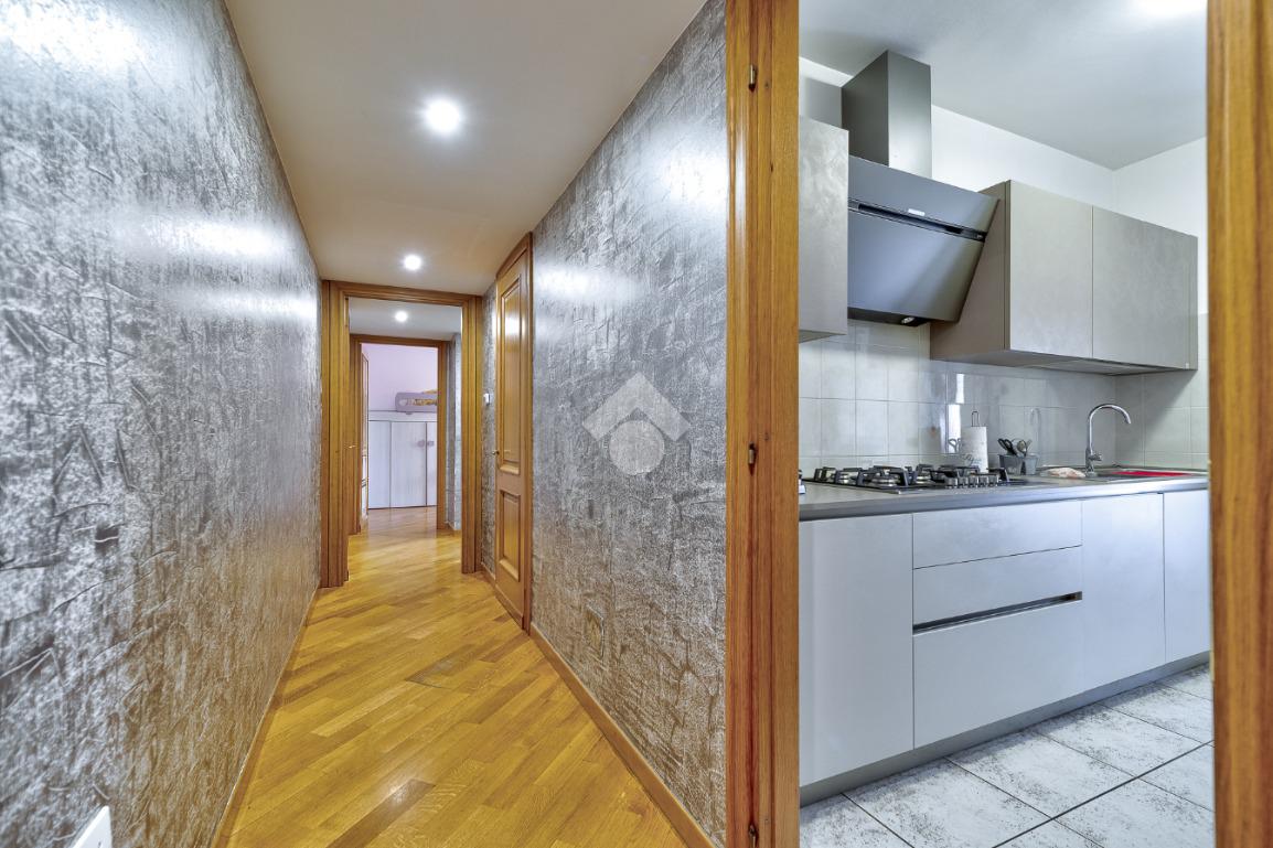 L’appartamento si apre su una grande sala luminosa con accesso diretto al primo balcone, comunicante anche con la cucina e facilmente fruibile come sfogo esterno per la zona giorno. Sulla sinistra dell’ingresso si sviluppa un corridoio che conduce alla cucina abitabile, separata e funzionale.
