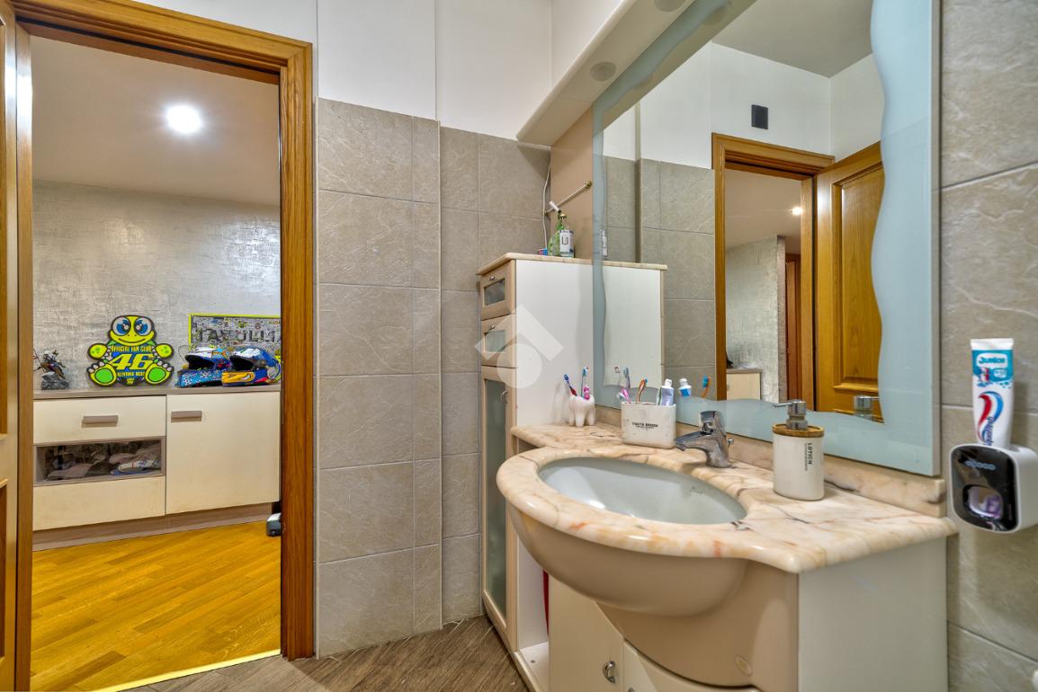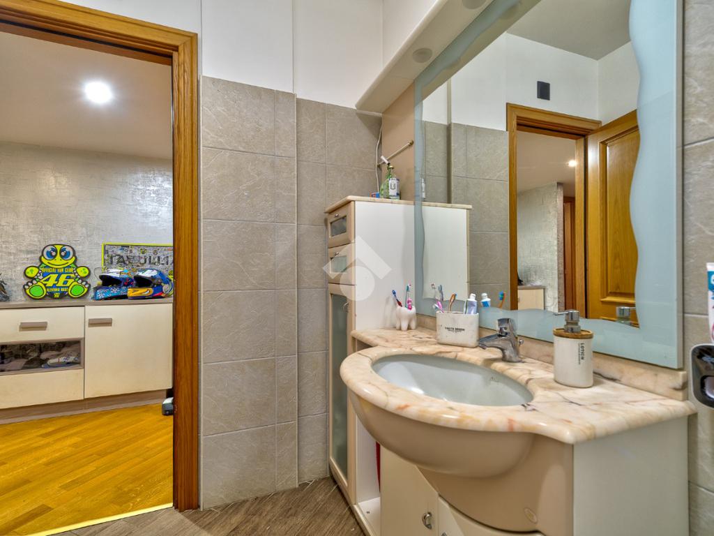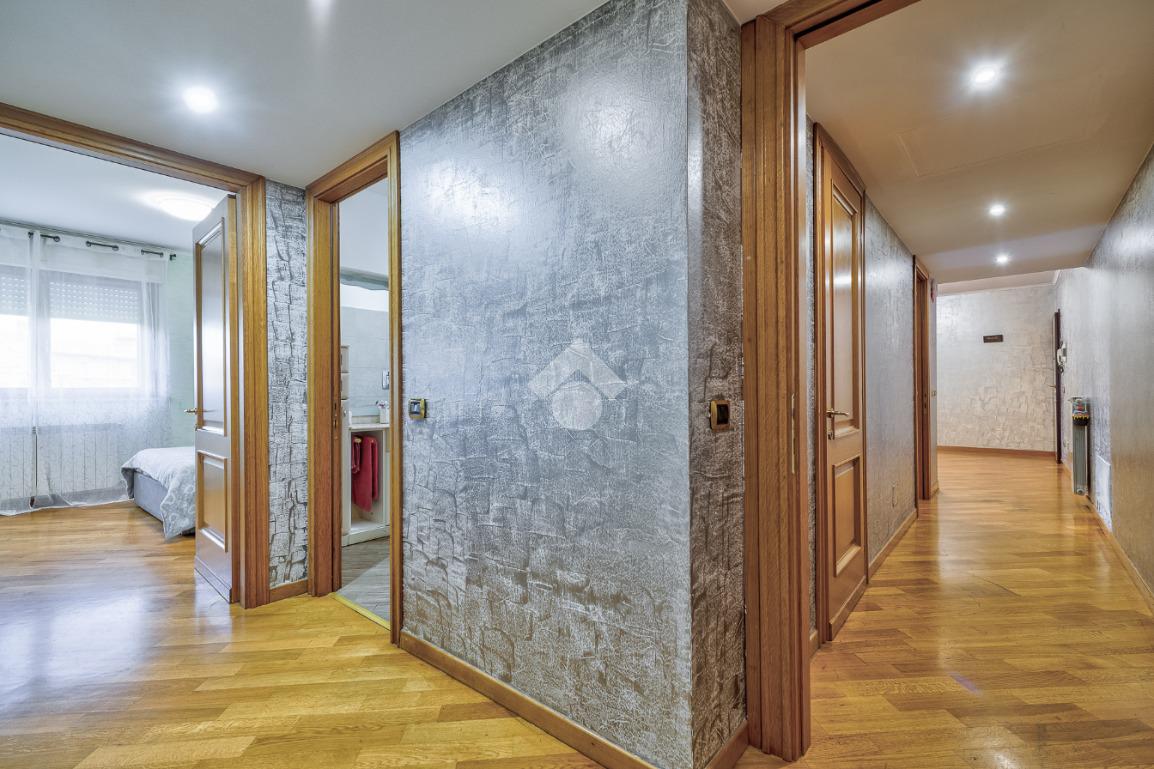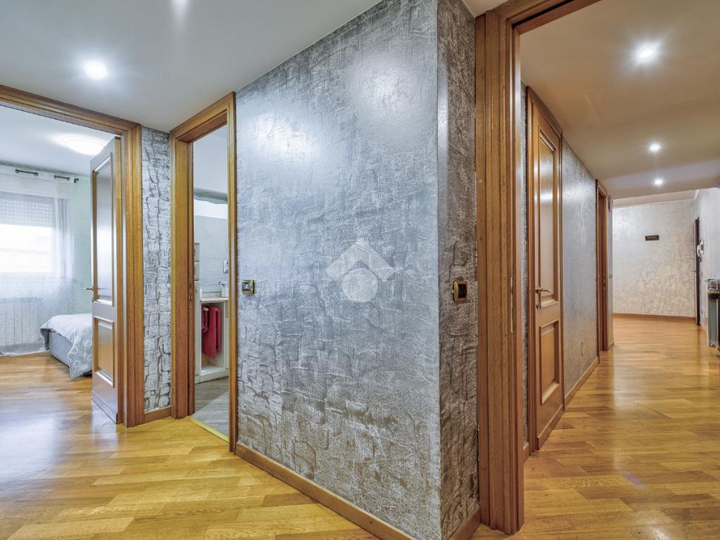 Proseguendo troviamo un bagno cieco dotato di box doccia, mentre al termine del corridoio è presente una grande camera da letto con accesso al secondo balcone. Poco prima, sulla destra, un comodo disimpegno separa la zona più riservata della casa, composta dalla camera padronale e da un bagno finestrato con vasca.