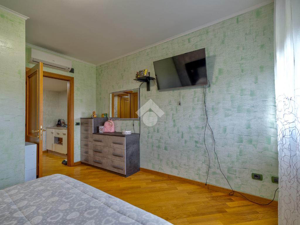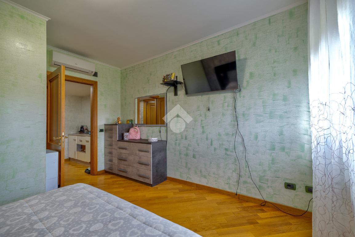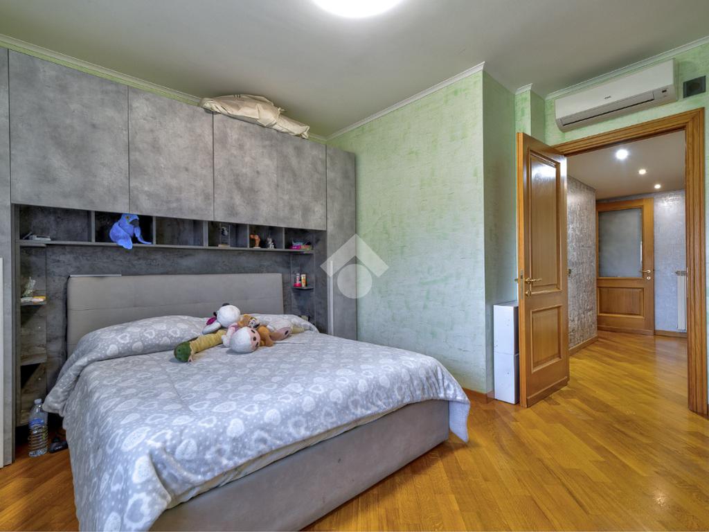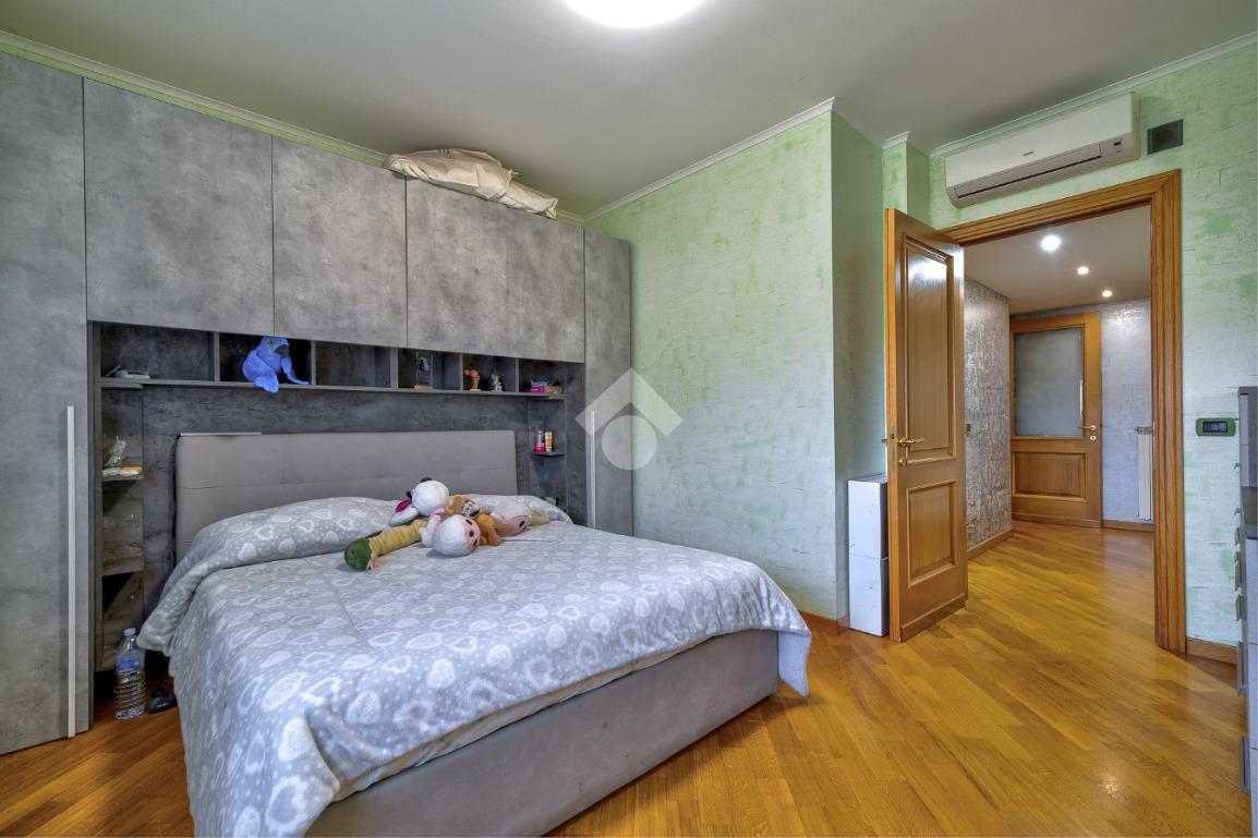 Proseguendo troviamo un bagno cieco dotato di box doccia, mentre al termine del corridoio è presente una grande camera da letto con accesso al secondo balcone. Poco prima, sulla destra, un comodo disimpegno separa la zona più riservata della casa, composta dalla camera padronale e da un bagno finestrato con vasca.